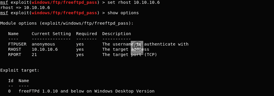 ○ set rhost 10.10.10.6