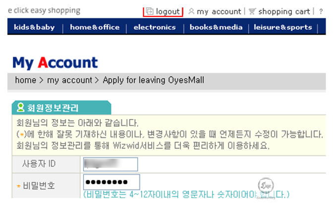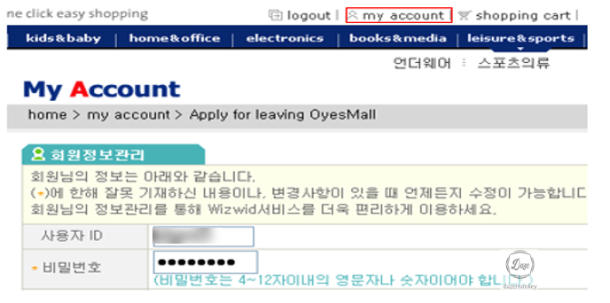| 서비스 위치 | [HOME] > [myaccount] |