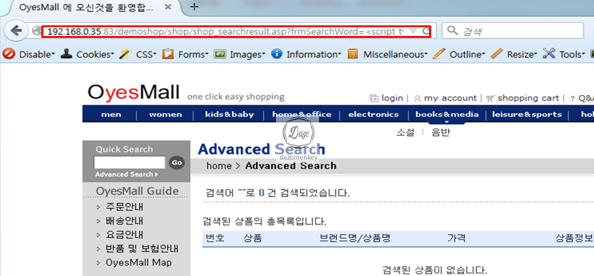 | 서비스 URL | http://10.10.0.15:83/demoshop/shop/shop_searchresult.asp |