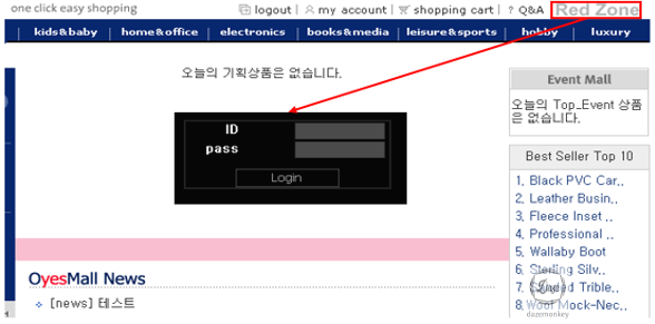 관리자 페이지에서 일반 사용자 계정으로 접근이 되면 안된다. 하지만, 웹 페이지 상단에 “Red Zone”을 클릭만 하면 관리자 페이지로 접근이 가능하다.