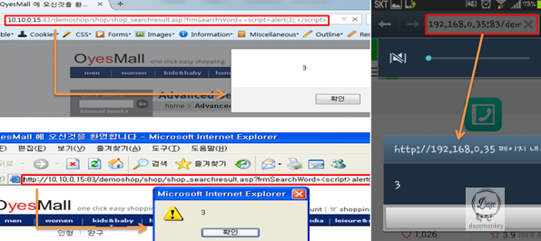 이 떄 사용자들이 OyesMall 쇼핑몰 사이트에 연결될 수 있도록 악성스크립트가 삽입된 OyesMall URL을 노출시킨다.