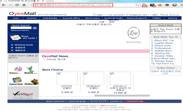 | 서비스 URL | http://10.10.0.15:83/demoshop/login/login2.asp |