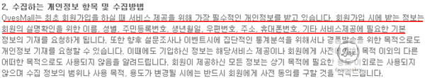 OyesMall 쇼핑몰이 개인정보를 수집하는지 확인하기 위해 메인 페이지 하단의 “개인정보 보호 정책”을 클릭해서 확인해 보면 개인정보를 회원 가입시 요청하고 있다.