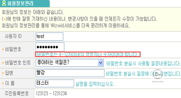 3. 영문 대/소문자, 숫자, 특수문자 중 3가지 이상 조합하여 최소 8자리 설정