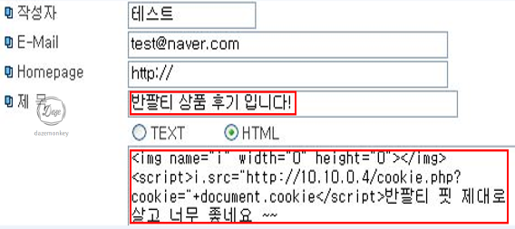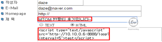 점검 결과 작성자, Homepage, 내용 파라미터들은 XSS취약점이 존재한다.