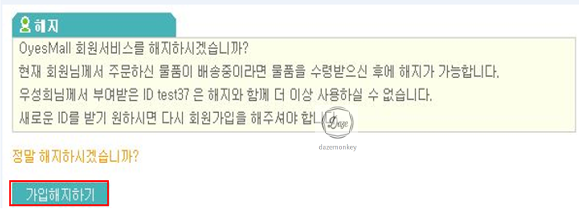 회원 정보 수집이 끝난 후 해당 사용자와 OyesMall 쇼핑몰에게 피해가 갈 수 있도록 해당 계정을 탈퇴 시킨다.