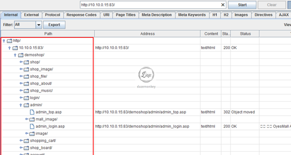 웹 크롤링 도구인 Screaming Frog SEO Spider를 이용하면 쇼핑몰의 모든 페이지 구조를 보기 쉽게 트리 형태로 보여준다. 이를 통해 메인 페이지, 게시판, 관리자 페이지, 이미지 파일 위치, 파라미터 등의 정보를 수집할 수 있다.