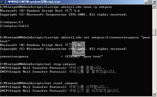 SMTP - Microsoft ESMTP MAIL Service, Version: ~ ready at 배너 제거 (adsutil.vbs)