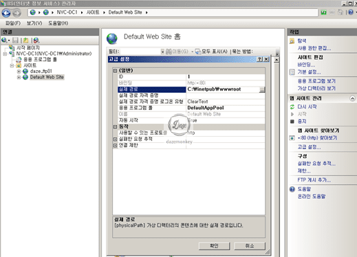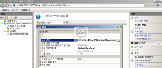 ▷ 해당 서버 > 사이트 > 해당 사이트 마우스 우측 클릭 > 웹 사이트 관리 > 고급설정