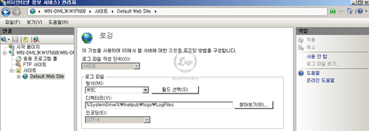 ▷ 해당 서버 > 사이트 > 해당 사이트 > IIS – 로깅 > 작업 탭 > 사용