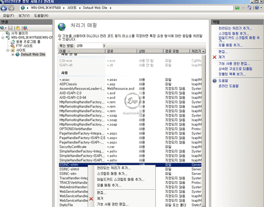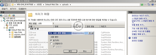 ▷ 해당 서버 > 사이트 > 해당 사이트 > 업로드 디렉토리 선택 > IIS – 처리기 매핑