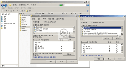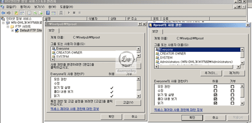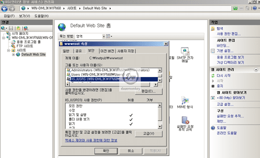 2. 홈 디렉토리(기본 : C:\inetpub\wwwroot) 내에 적절한 ACL 권한 부여