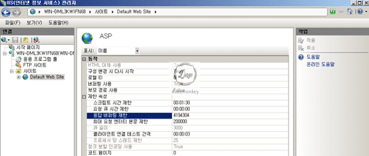 ▷ 제한 속성 > "응답 버퍼링 제한", "최대 요청 필터링 본문 제한" 용량을 최소 범위로 설정
