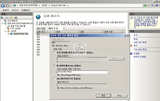 ▷ 각 에러 코드 더블 클릭 > 이 사이트에서 URL 실행 > 별도의 에러 페이지 지정 > 확인