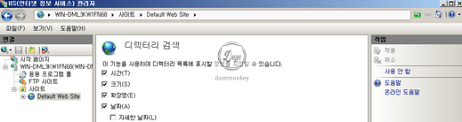 ▷ 시작 > 실행 > inetmgr > 해당 서버 > 사이트 > 해당 웹 사이트 > IIS – 디렉토리 검색 더블 클릭 >