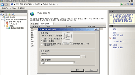 ▷ 해당 서버 > 사이트 > 해당 사이트 > IIS – 오류 페이지