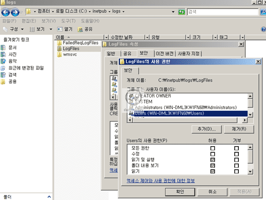 IIS 로그 파일 및 디렉토리 권한
