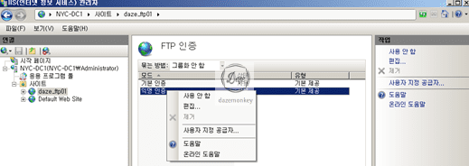 ▷ 해당 서버 > 사이트 > 해당 FTP 사이트 > FTP – FTP 인증