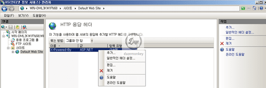 ▷ 해당 서버 > 사이트 > 해당 사이트 > IIS – HTTP 응답 해더 > X-PoweredBy 선택 > 마우스 우측 클릭 > 제거 > 예