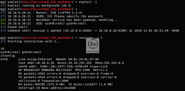 공격 모듈을 지정하고, 공격 명령을 내리면 대상 시스템과 세션이 맺어진다.