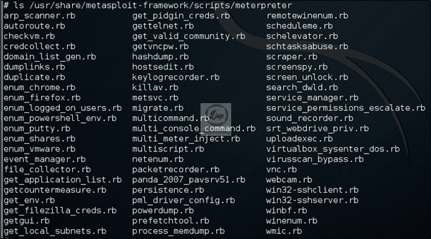/usr/share/metasploit-framework/scripts/meterpreter 디렉토리에 meterpreter shell에서 실행 가능한 스크립트가 존재한다.