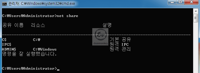 윈도우 시스템은 기본적으로 IPC$, ADMIN$, C$, D$ 등 숨김 공유 폴더가 활성화 되어 있다.
