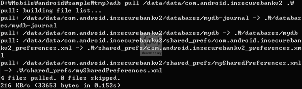 모바일 단말기의 /data/data/ 디렉토리는 앱 실행 시 필요한 정보를 저장하고 있는 위치이다. 모바일 단말기에 설치된 앱은 해당 디렉토리의 패키지명 형태로 저장하고 있다. 해당 패키지명으로 검색하여 모든 데이터를 로컬 PC로 복사한다.