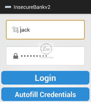 모바일 앱에서 Autofill Credentials 버튼을 클릭하면 아이디를 Base64 디코딩, 비밀번호를 AES 복호화하여 입력 폼에 자동으로 입력한다.