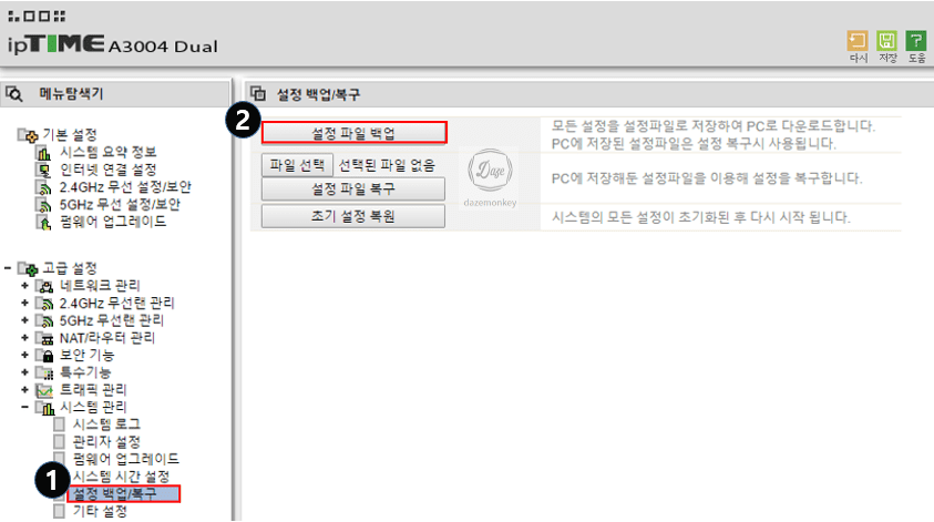 이런 상황을 방지하고 빠른 대처를 하려면 사전에 공유기의 설정 파일을 백업하고, 설정에 이상이 발생한 경우 기존에 백업한 파일로 복원해야 한다.