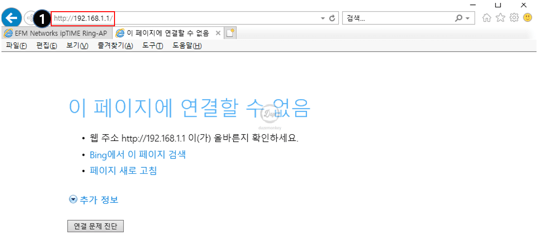 유무선 공유기에 접속되어 있는 컴퓨터, 스마트폰 장치에서 갑자기 인터넷이 되지 않을 때 ipTIME 관리자 페이지의 설정 화면이 나타나는 경우가 있다.