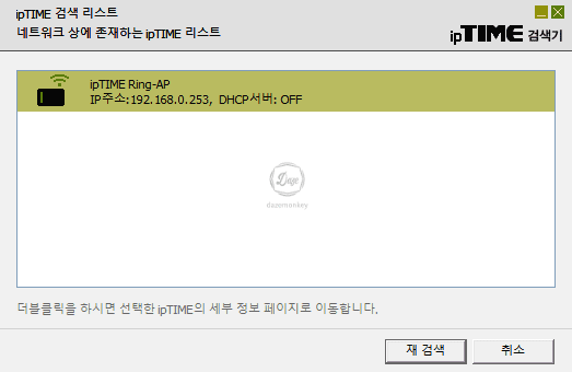 ipTIME 공식 홈페이지에 접속하면 ipTIME 검색기를 다운로드하고 설치를 한다. 해당 프로그램은 자동으로 공유기의 목록, 공유기의 아이피 주소, 설정 화면 제어 등 손쉽게 도와주는 프로그램이다.
