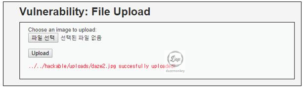 정상적인 그림 파일을 업로드하면 "../../hackable/uploads/jaze2.jpg successfully uploaded!" 메시지가 출력된다.