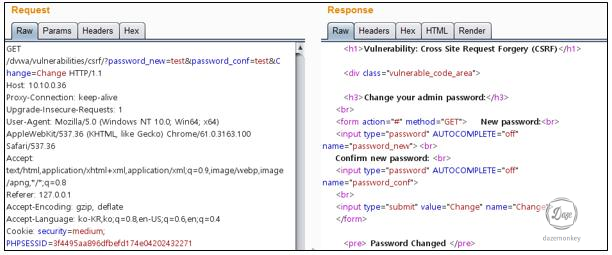새로운 비밀번호를 입력 후 서버로 전송되는 패킷을 중간에 가로채어 REFERER 환경변수 값을 "127.0.0.1"로 변조 후 서버로 전송한다.
