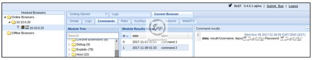 스크립트가 삽입된 게시글을 클릭하면 BeEF는 사용자의 세션 정보를 획득한다.