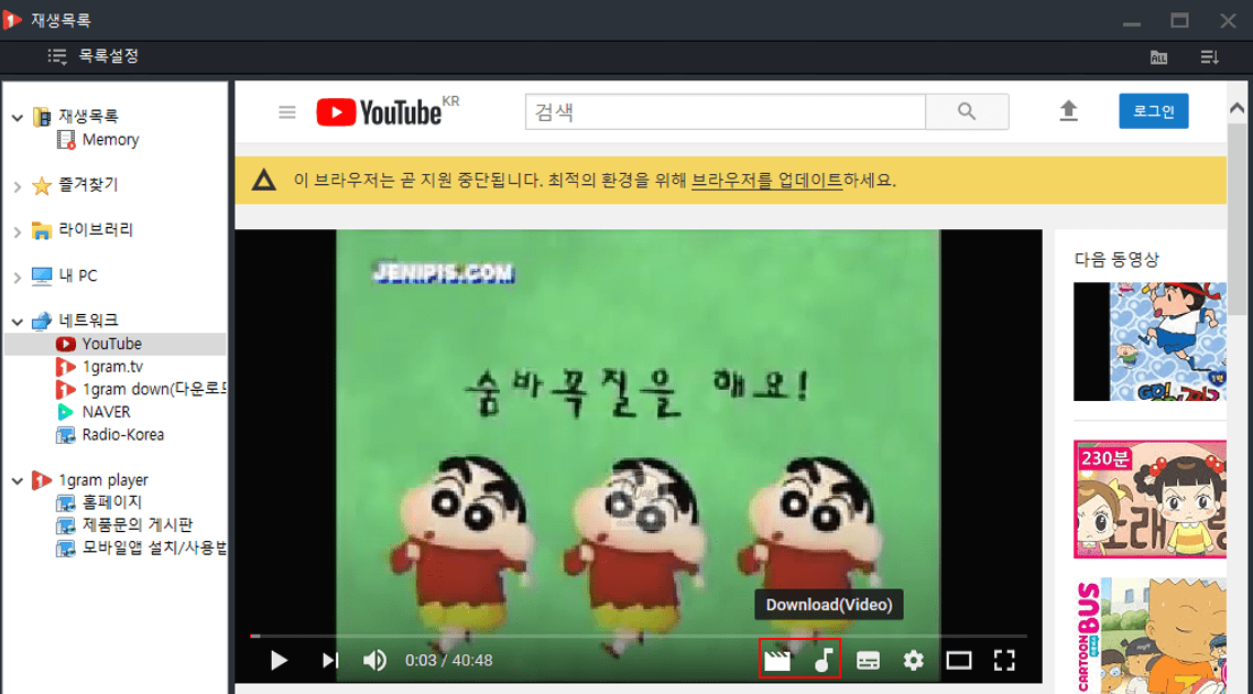 youtube 동영상 다운로드 - 1그램 플레이어 사용법
