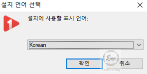 다운로드가 완료되면 setup.exe 파일이 생성되는데, 더블클릭하여 설치를 진행한다. 설치에 사용할 표시 언어에 Korean을 선택하고, 확인 버튼을 클릭한다.