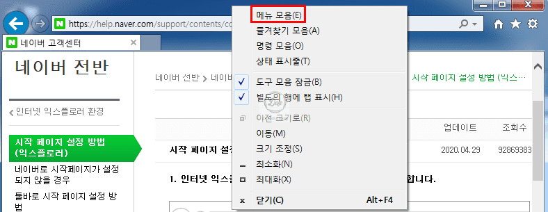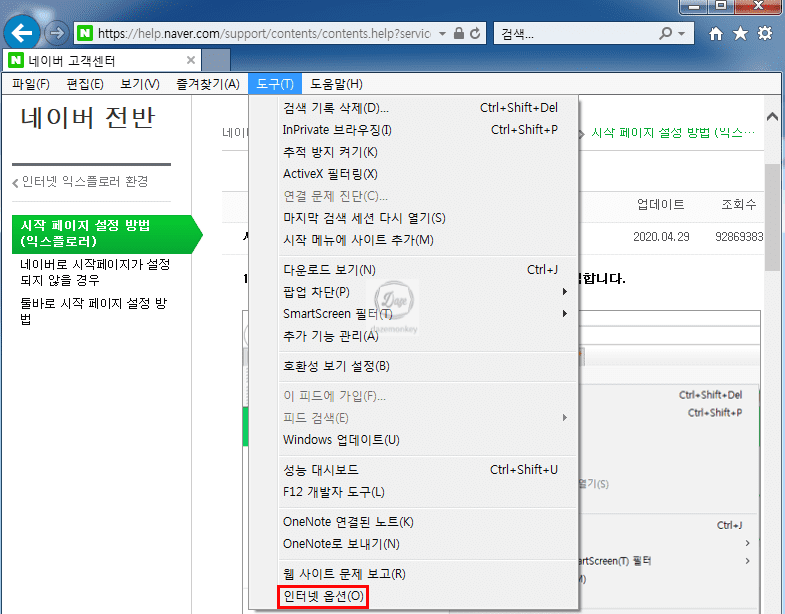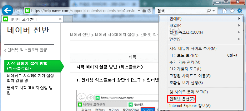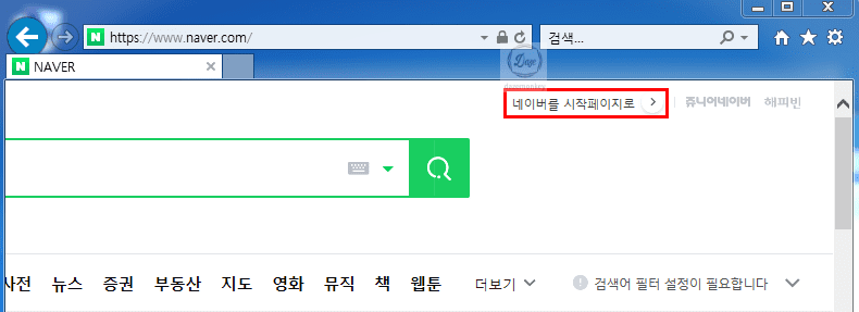 네이버를 시작페이지로 바꾸기 (Intetnet Explorer)