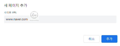 새 페이지 추가 창이 나타나면 사이트 URL에 네이버 사이트 주소인 www.naver.com 을 입력하고 추가 버튼을 클릭한다.