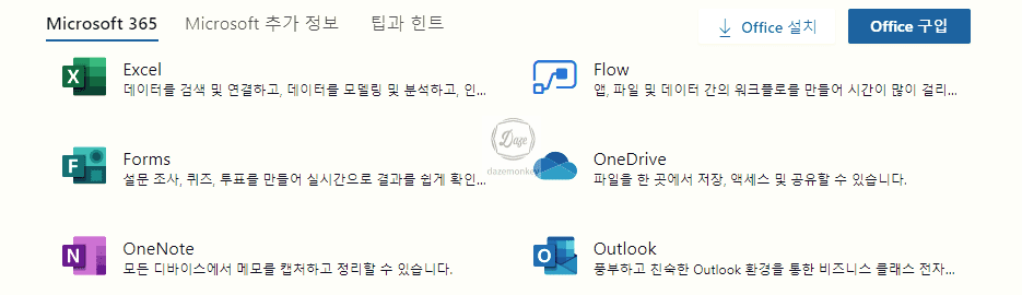 필자도 사이트를 오랜만에 들어가보니 예전과 많이 바뀐 부분이 있다. 과거에는 MS Office 2003, 2007, 2010, 2013, 2016, 2019 이름으로 사용되었다. 하지만, 요즘은 MS Office 365 이름의 서비스로 제공되고 있다고 한다.