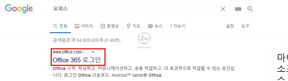 구글, 다음, 네이버 등 검색 엔진에서 오피스 키워드로 검색하면 Office 365 로그인 페이지 주소가 나온다. 검색해서 나온 링크를 이용하면 Microsoft Office 365 공식 사이트로 연결된다.