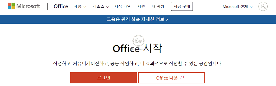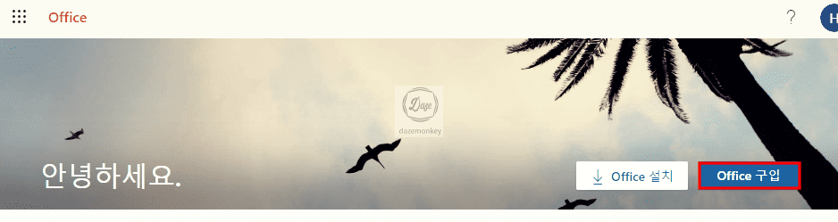 이번에는 MS Office 365를 무료로 다운로드 하는 방법을 알아보자. 현재 로그인이 되어 있는 상태에서 Office 구입 버튼을 클릭한다.