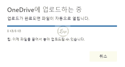 업로드 및 열기 버튼을 클릭해서 컴퓨터에 저장된 엑셀을 선택한다. 몇 초 기다리면 원드라이드 클라우드에 업로드 중 메시지가 나타난다.