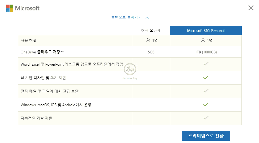 여기서 주의깊게 봐야 할 점이 아래를 보면 1개월 무료 체험이 있다. 이것을 이용하면 엑셀 무료 다운로드 가능하다.