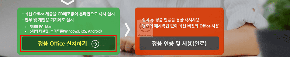 왜냐하면 하단의 인증코드를 입력해야 하는데, 공식파트너에게 직접 전화하여 인증코드를 받아야 오피스365 평생계정으로 설치할 수 있기 때문이다.
