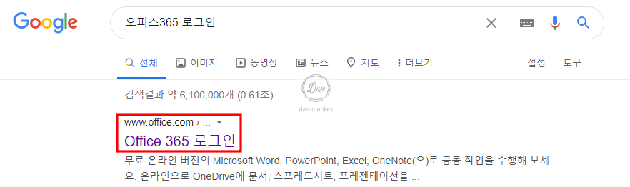 검색 엔진에 오피스365 로그인 키워드로 검색하여 Office 365 로그인 링크를 클릭한다.