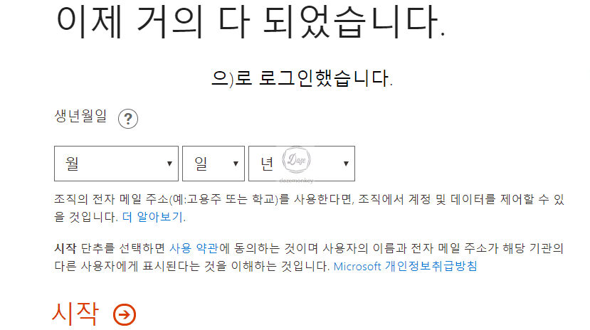 이메일 계정과 비밀번호를 제대로 입력하면 생년월일을 요구한다. 자신의 생년월일을 입력해도 되고, 아무렇게 입력해도 상관없다.