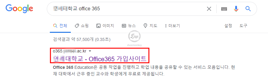 검색 엔진에서 "대학교명 office 365" 키워드로 검색한다. 만약, Office 365 가입사이트가 나오면 대학교가 MS 오피스와 제휴되어 있어 해당 사이트에서 오피스 프로그램을 무료로 설치할 수 있다.