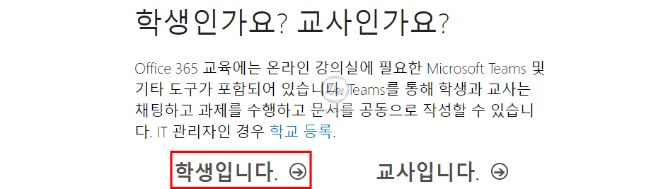 대학교 이메일을 입력하면 학생, 교사 여부를 묻는 화면이 나타나면 학생입니다를 클릭한다.