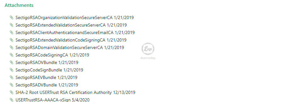 검색을 해서 나온 링크를 클릭하면 sectigo 공식 사이트로 이동된다. sectigo 사이트 하단을 보면 다양한 루트 인증서를 첨부하고 있다.